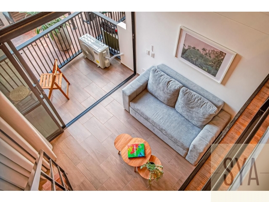 Pesos ColombianosApartaestudio, dúplex, amoblado, ubicado en el oeste, barrio Los Cristales, primer piso con espectacular vista, ascensor, estrato cinco, área: 56mts2. Consta de sala comedor, una habitación, dos baños, un parqueadero, cocina integral tipo americano, balcón, baño social, depósito, zona de lavandería, aire acondicionado. En conjunto residencial, con zona social, gimnasio, jacuzzi, piscina. Area de co-working, zona BBQ, portería 24 horas. Rentas cortas son permitidas. Visita con cita previa.