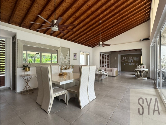 Pesos ColombianosCasa, dotada completamente, ubicada en Rozo, Palmira, un piso, estrato rural, área: 680 mts2 en lote de 3.380mts. Consta de sala comedor, seis habitaciones, seis baños, parqueaderos cubiertos para cuatro carros y cuatro en el exterior, cocina integral tipo americano, alcoba del servicio con baño, baño social, depósito, estudio, terraza, jardines, zona de lavandería. En condominio, con zona social, piscina con jacuzzi, Aire Acondicionado en todas las habitaciones, huerta, espacio para juegos. Administración incluida en el canon también incluye jardinero y piscinero. Visita con cita previa.
